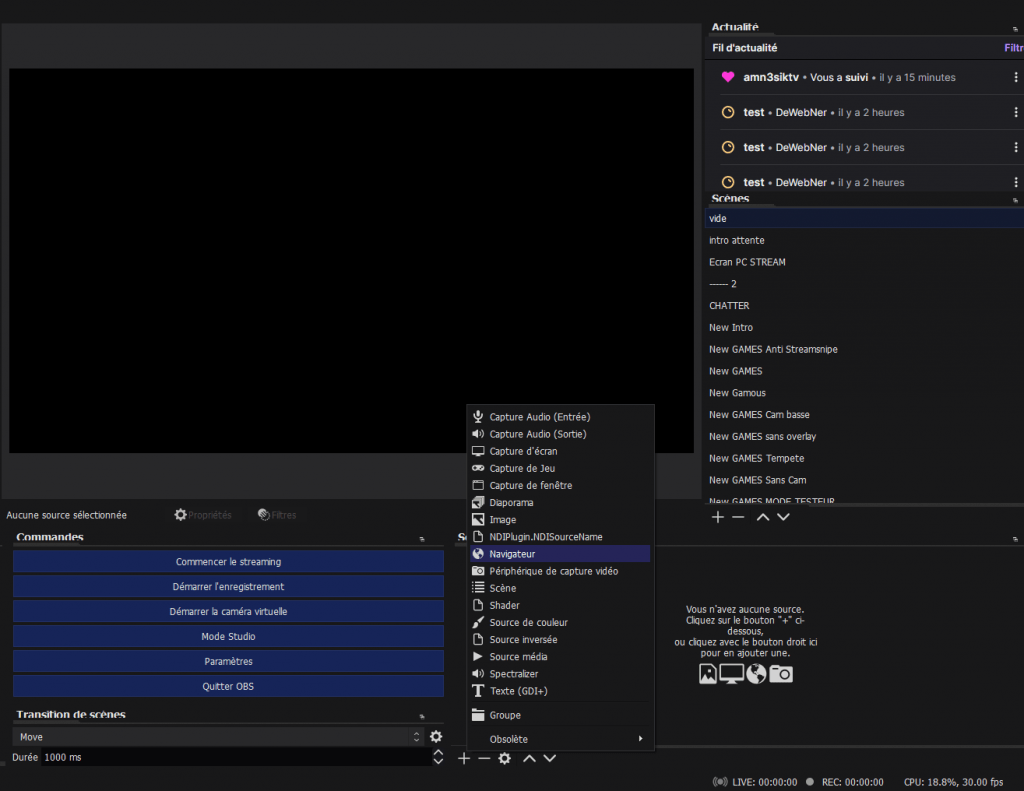 Rends-toi sur ton logiciel de streaming et crée une source de navigateur