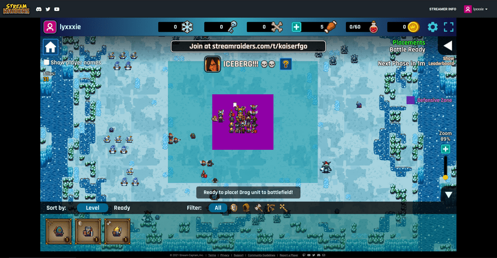 Stream Raiders est conçu pour être léger et joué avec votre contenu principal, afin que les téléspectateurs puissent placer des unités tout en regardant.