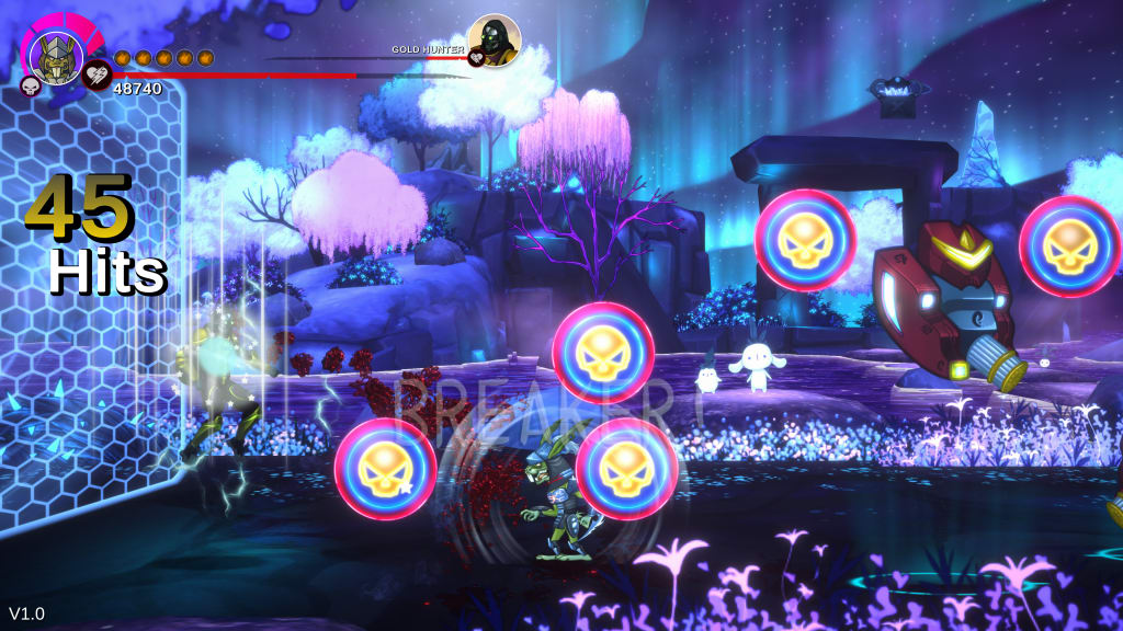 Le design des héros lapins est plutôt intéressant. Cependant, j’ai rencontré un gros problème avec la difficulté du jeu. En jouant en mode NORMAL, je suis resté bloqué à quatre niveaux de la fin. J’ai essayé en mode SUPER FACILE, mais j’ai eu exactement le même problème. Le jeu souffre d’un gros manque d’équilibrage, que ce soit au niveau des spawns de vie ou de la difficulté en général. J’ai l’impression de jouer en mode DIFFICILE, que je sois en NORMAL ou en FACILE.
