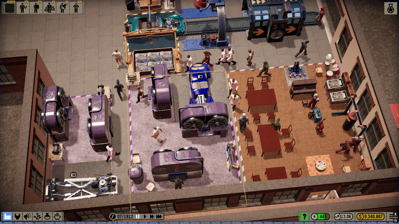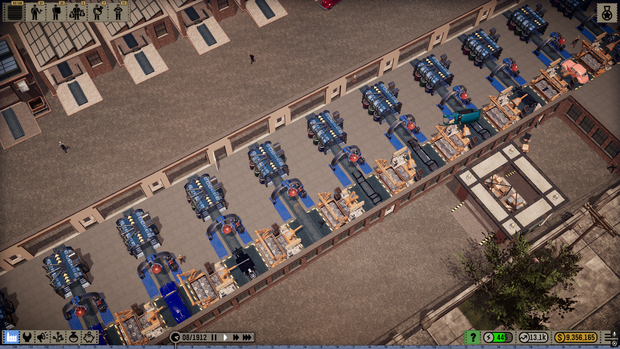 Car Manufacture place le joueur au cœur d’une usine automobile, avec pour objectif principal la rentabilité et la stabilité de la production. Chaque étape doit être pensée avec précision : disposition des lignes, allocation des ressources R&D, gestion du personnel et contrôle des coûts.