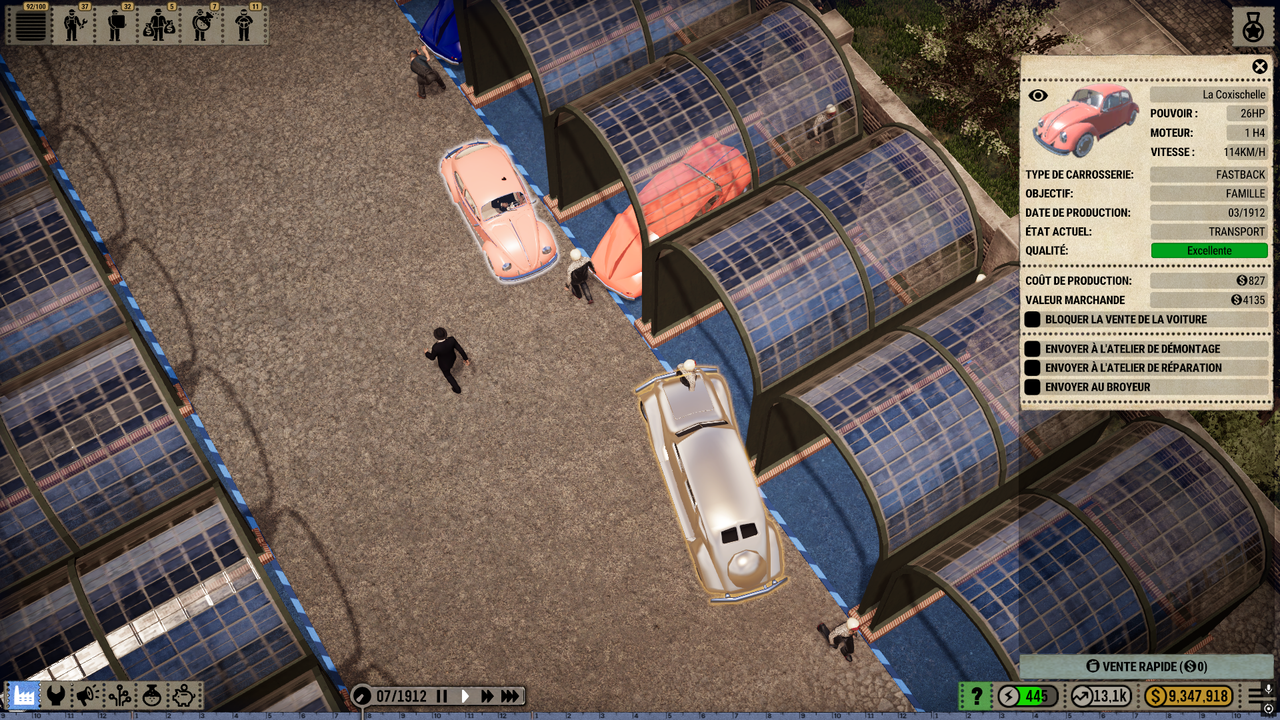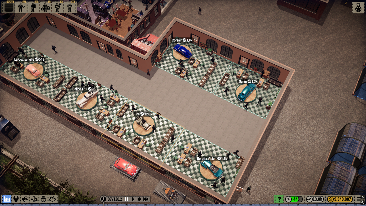 Visuellement, Car Manufacture adopte une esthétique sobre, privilégiant la clarté de lecture à l’aspect spectaculaire. L’interface est dense mais cohérente, demandant un temps d’adaptation raisonnable pour les joueurs habitués aux jeux de gestion. Avec plusieurs heures a joué nous avons trouvé aucun bug et les futures features sont visible.
