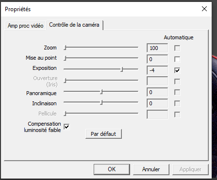 Toujours dans les “Propriétés” de votre périphérique de capture sur OBS.