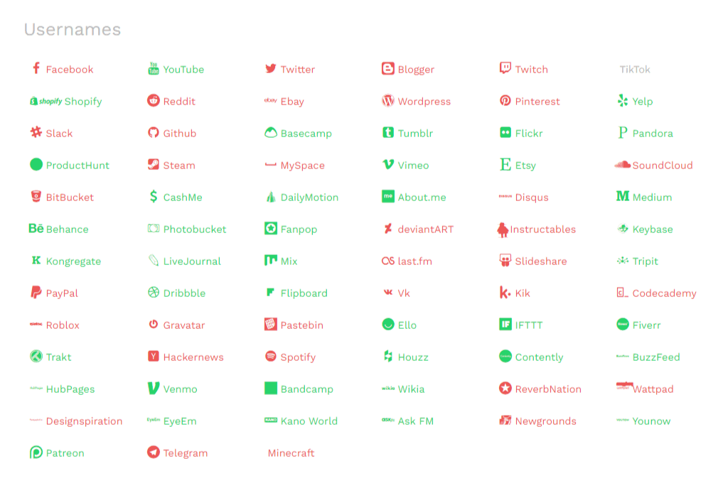 Vous trouverez les noms de domaine disponible, mais ce qui nous intéresse, c’est la disponibilité des pseudos sur les réseaux