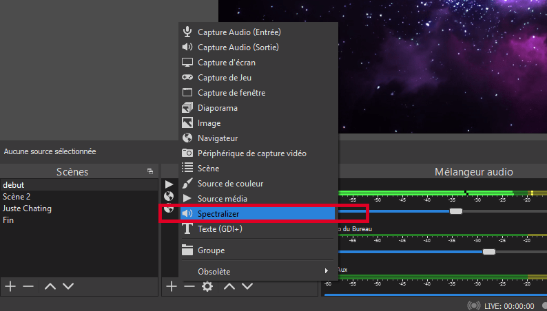 Une fois votre script spectralizer installer et votre obs studio ouvert.