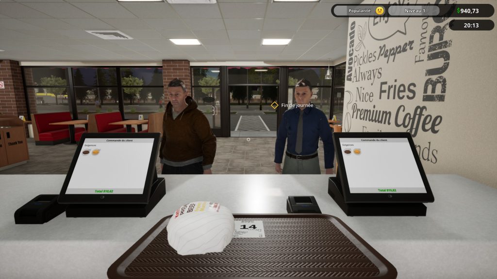 On ne va pas se mentir, en solo, Fast Food Simulator est un véritable défi. Mais bonne nouvelle, une vidéo en multi est prévue très prochainement sur cet article ! Dès que je trouve des amis qui ont le jeu, le jeu prend une toute autre dimension, et la coopération devient essentielle pour venir à bout des niveaux les plus tendus. En le jouant en solo, je me suis rendu compte que cette dimension d’être seul dès le départ du jeu le rendait moins attrayant. (Les dev si vous lisez ceci mettre la fonction recrutement d’employées accessible dès le niveau 1).
