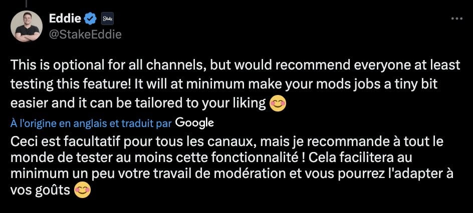 L’une des nouveautés les plus attendues est sans doute la modération par IA. Cette fonctionnalité, basée sur le machine learning, permet de détecter et de supprimer automatiquement les messages potentiellement nuisibles ou indésirables en fonction des préférences de chaque communauté. Comme l’explique Eddie, co-fondateur de Kick :
