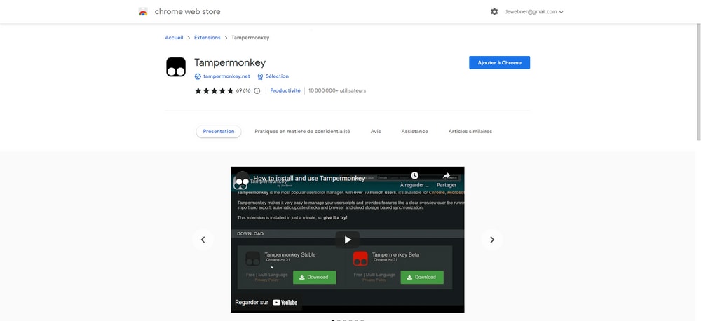 Il vous faut avant Tampermonkey car c’est ce plugin qui va exécuter le script
