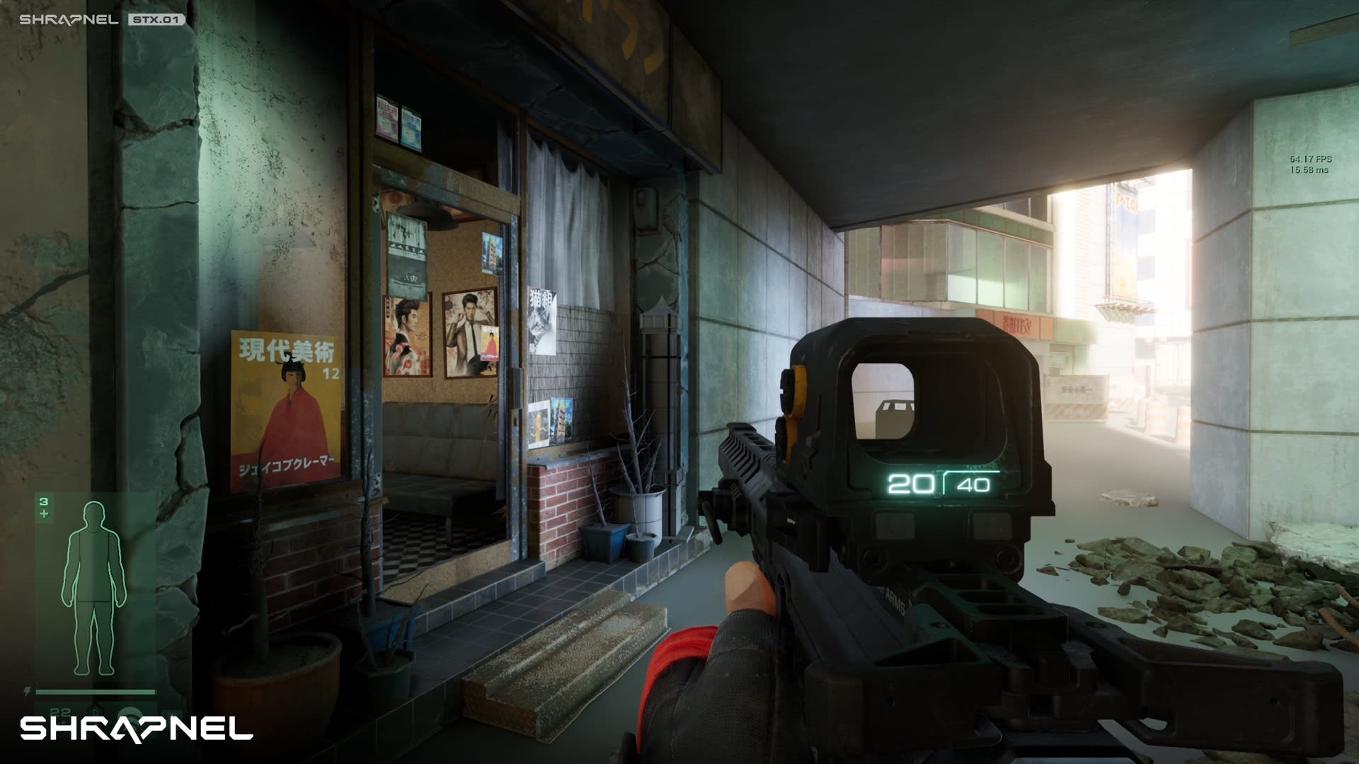 Shrapnel nous plonge dans un futur où une collision avec un astéroïde a rendu une partie de la Terre inhabitable. Les joueurs incarnent des mercenaires chargés d’extraire une ressource précieuse de cette zone contaminée, tout en affrontant d’autres mercenaires. L’univers est sombre et réaliste, et l’ambiance est renforcée par une bande-son immersive.