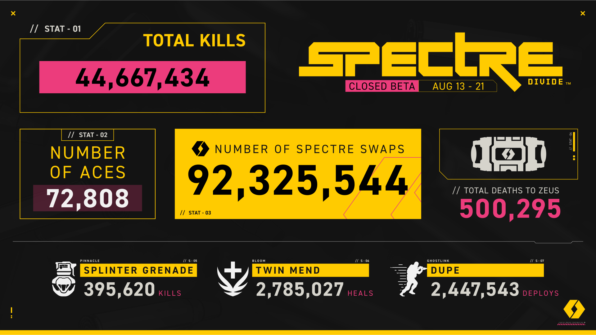 “De la part de toute l’équipe de Mountaintop, MERCI d’avoir rendu cette bêta fermée encore plus réussie que ce que nous aurions pu espérer ! La passion que vous avez montrée pour le jeu signifie énormément pour nous. Nous avons hâte de vous voir encore plus nombreux très bientôt pour la compétition. GGs @Spectre News”