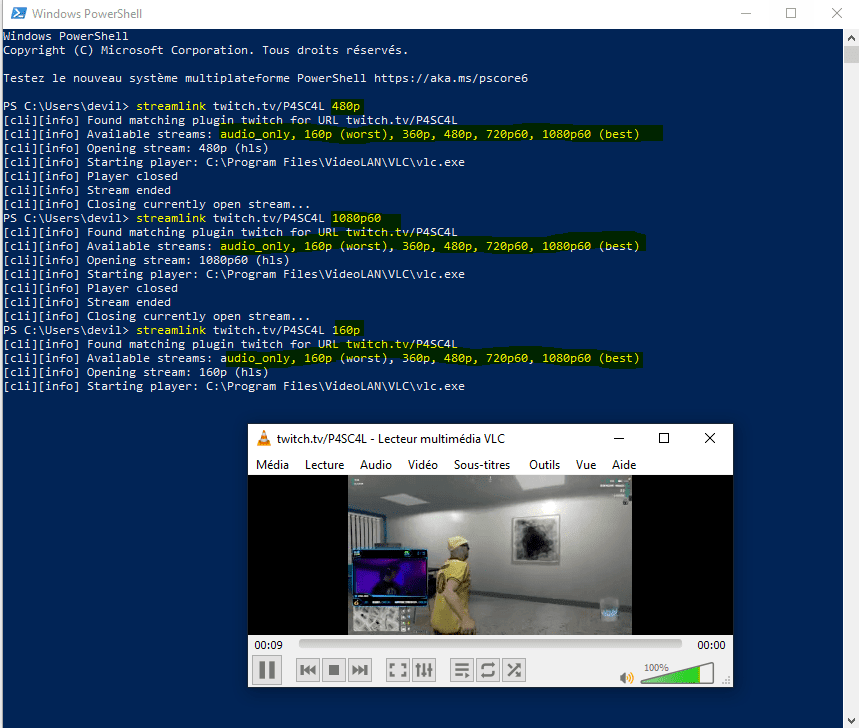- Commande de Base : Utilisez la commande suivante pour ouvrir le stream de P4SC4L sur Twitch dans VLC avec la meilleure qualité disponible :