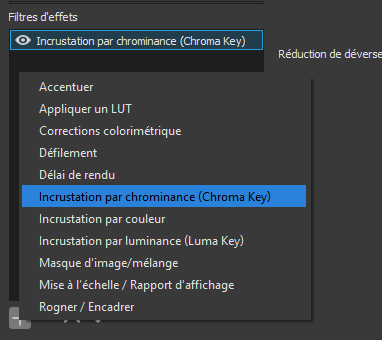 Nous allons appliquer un filtre “incrustation pas chrominance aka (chroma key).